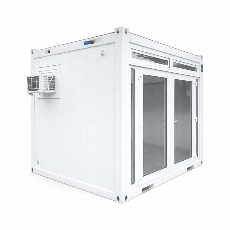 En allsidig container med många olika användningsområden. Fungerar bra som platskontor med 1-2 kontorsplatser, försäljningsyta med kassadisk eller som mässmonter med exponeringsytor. Dubbeldörrar i glas på kortsidan samt ovanpåliggande öppningsbara vädringsfönster ger ett naturligt ljusinsläpp och ett trevligt första intryck.