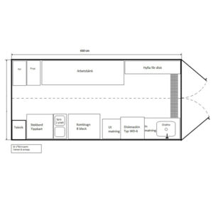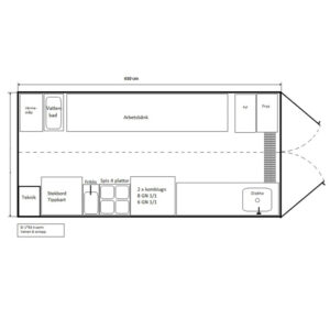 En kökscontainer med ett komplett kök för mindre till mellanstort antal gäster. Köket innehåller all den utrustning som förväntas finnas i ett mindre restaurangkök samt goda arbetsytor. Komplettera denna container med t.ex. en mindre disk- och en kylcontainer så har ni en komplett lösning för ett temporärt kök under kortare eller längre perioder.