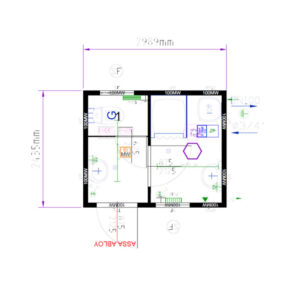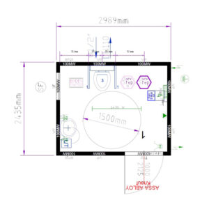 Slamtoalett komplett med elinstallationer, värme, belysning och isolering för användning året runt. Utrustad med handfat i plast och tappkran för vatten. Går att hantera med truck eller lyftöglor tak.
