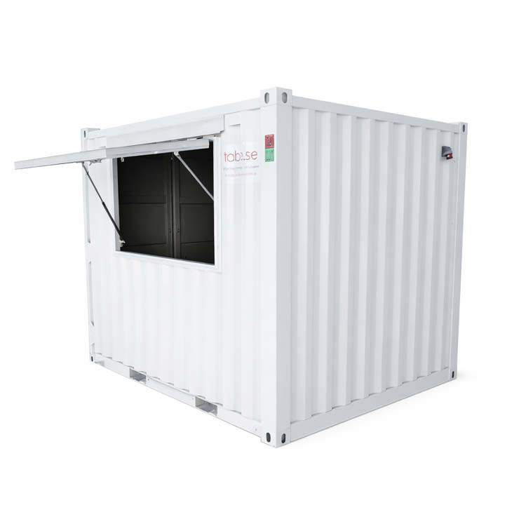 Enkel och kompakt containerlösning med serveringslucka för behov av mobil kiosk eller barlösning. Med plats för ca två personal ger denna enhet möjlighet till servering av enklare mat, dryck eller fungerar som caféenhet eller barcontainer. Containern är som standard utrustad med dimbar belysning i form av 3 spotlights.
