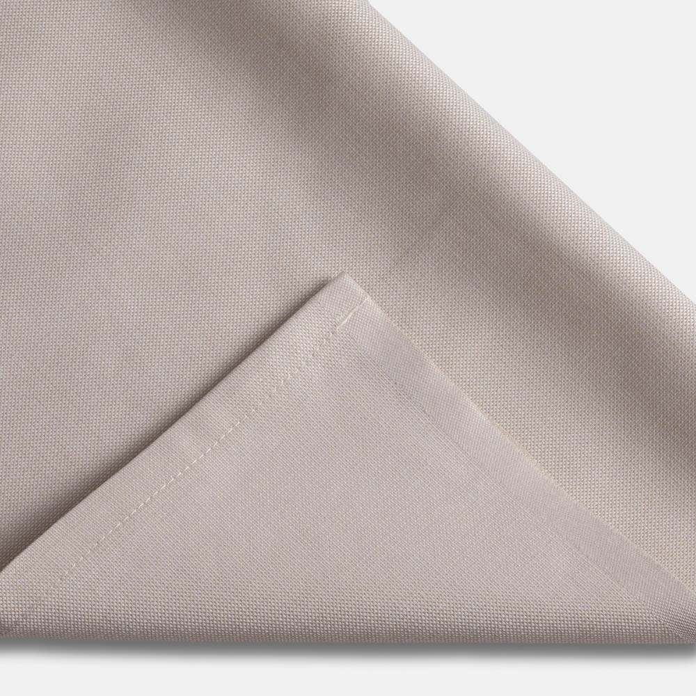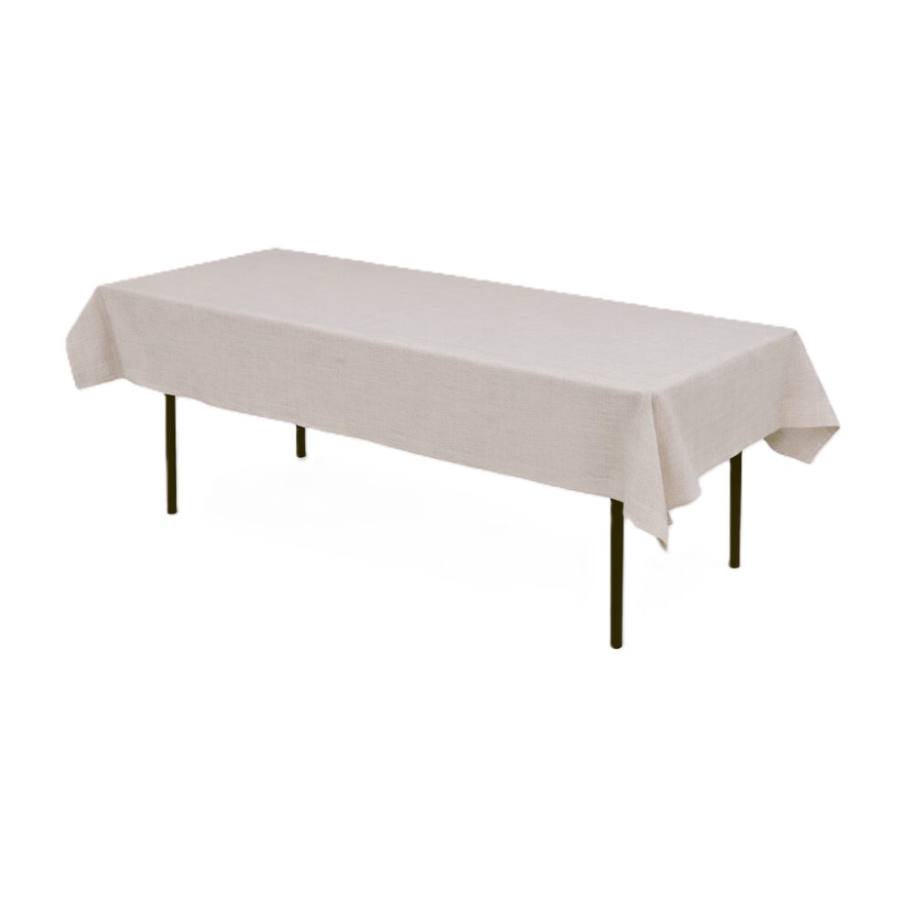 Beige rektangulär duk i 50% bomull och 50% polyester utan mönster med fållade/stärkta kanter. Passar till bord med måtten 70-90 cm x 180 cm art.nr. 1064 och art.nr. 1062.