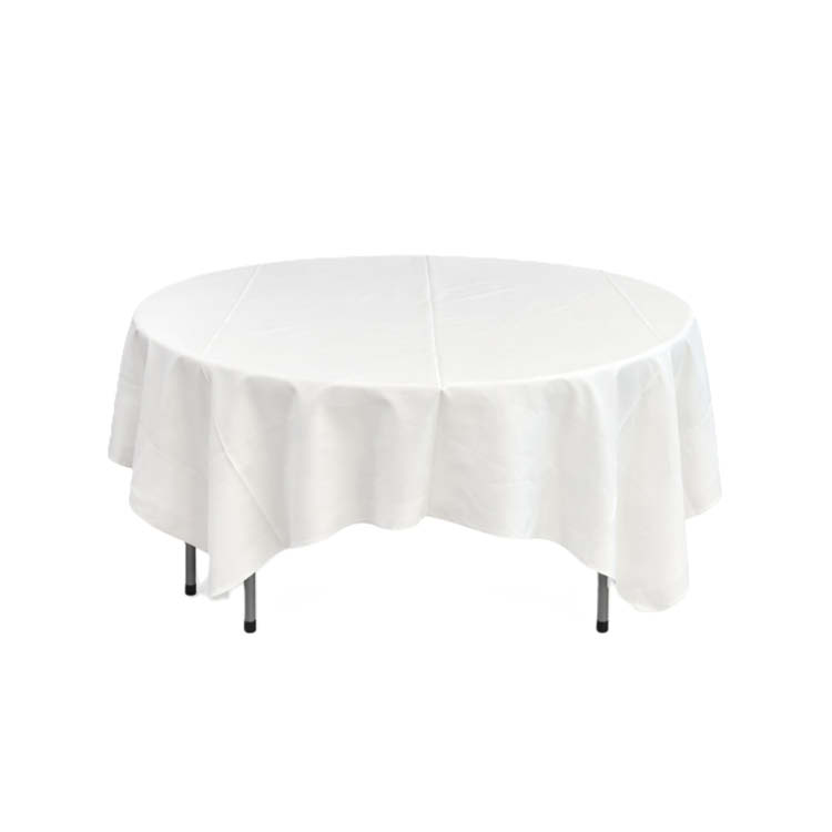 Vit kvadratisk bomullsduk “Atlas” med satängrand och fållade/stärkta kanter. Passar till runt bord med en diameter på ca 153 cm art.nr 1402.