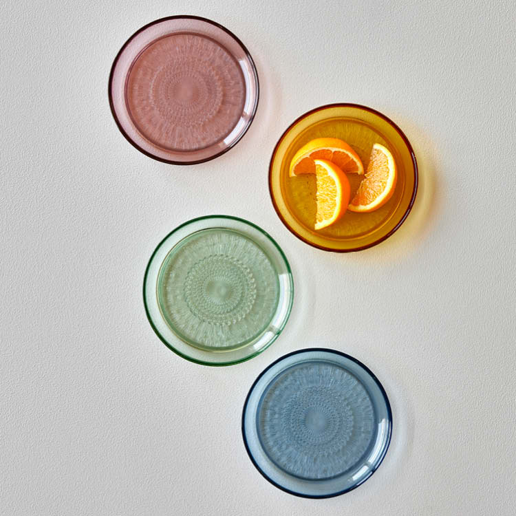 Vackra tallrikar i färgat glas som med fördel kan kombineras med flera andra material t.ex. stengods eller vitt klassiskt porslin.