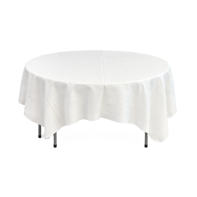 Runt bankettbord i plast för 6-8 pers som enkelt och smidigt kan fällas ihop. Bordsplattan är tillverkad av polyethylén och benen av pulverlackad stål. Bordet tål fukt och regn och om man spiller något är det bara torka av. För inomhusbruk och finare middagar och fester rekommenderar vi följande dukar: