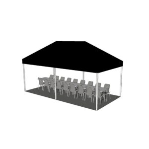 Tält för t.ex. sponsorarrangemanget på golfbanan, trädgårdsfesten eller vid entrén till festlokalen. Tältet har väggsektioner på 3 meter som kan monteras efter önskemål. Exempelvis kan hela eller halva långsidan lämnas öppen. Priset inkluderar montering. Om montering ska ske där tältpinnar inte fungerar måste betongvikter hyras till (art.nr 9810).